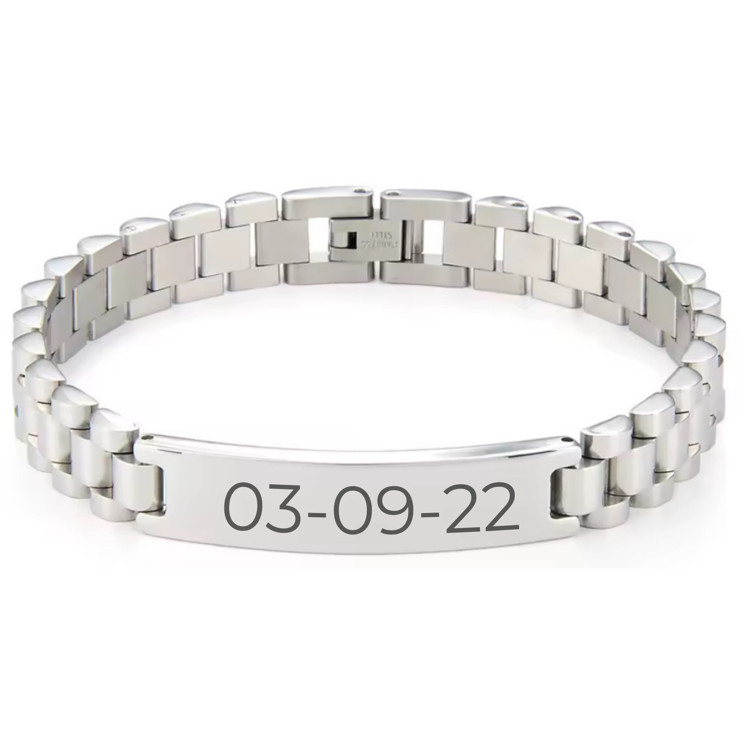 ENGRAVED BRACELET W/ BLOCK CHAIN